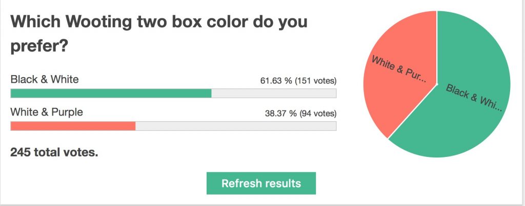 Considering the wall of text above, I recommend checking out the latest Kickstarter update.The update mainly concerns the Wooting two packaging. We had to choose between 2 color variations of the packaging and left it to the backers to decide which one to go with. To follow this up, the poll concluded Black & White as the winner.