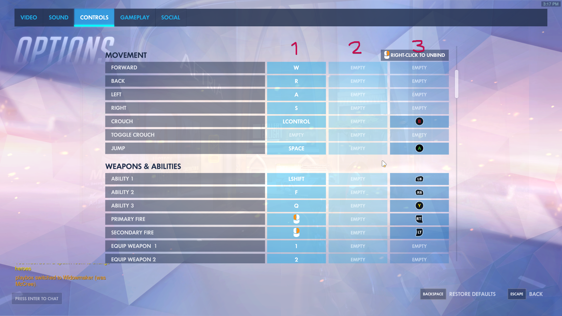 Again, Overwatch gets most of this right. 3 bindings for one action, although slot 3 is specifically resigned for a controller[/caption]