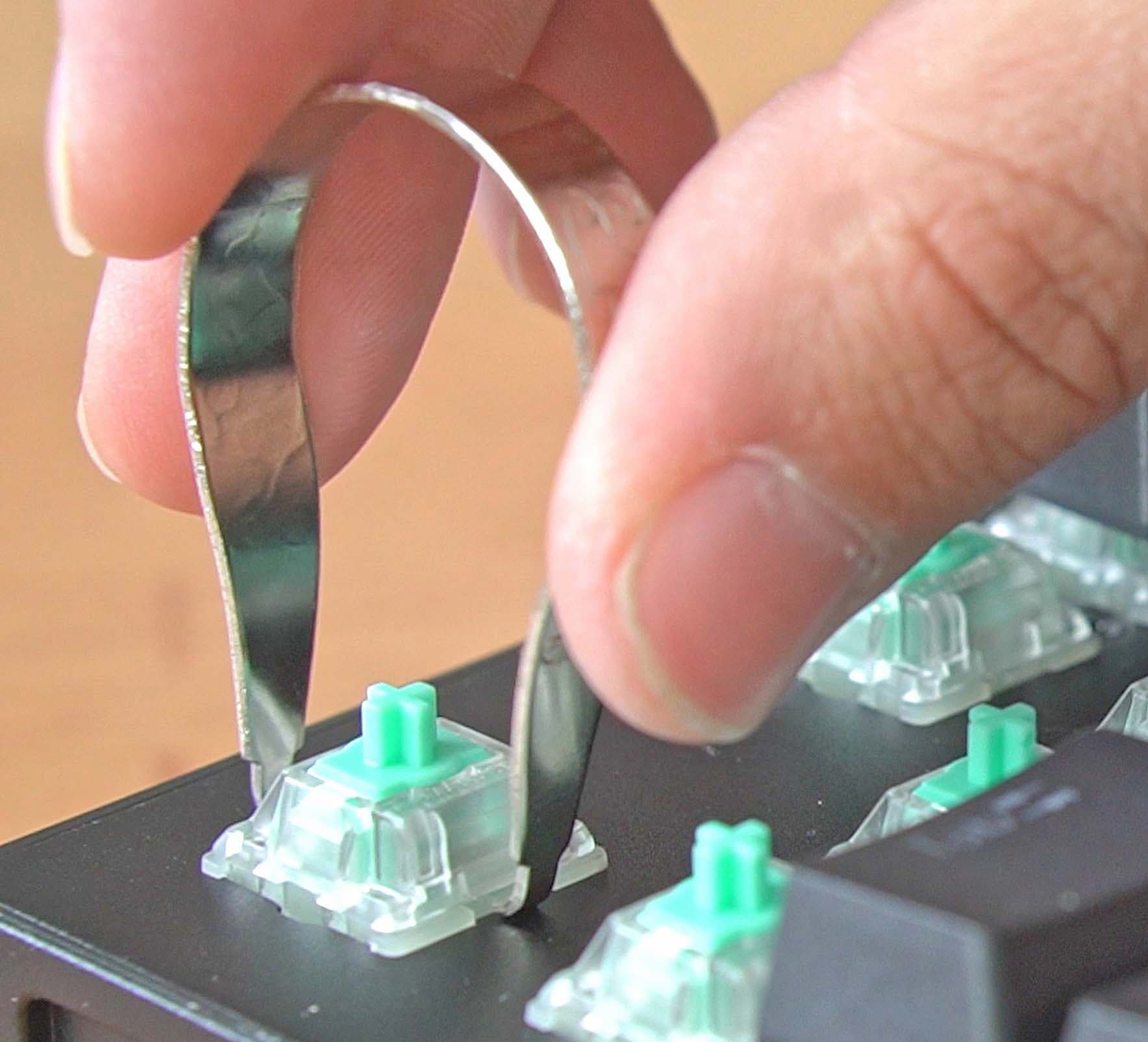 In order to remove your switches, you will have to grab a switch puller. Make sure the hooks on the switch puller align with the clips of the switch and pull the switches out. You can find the clips on the bottom and top side of your switch housing. Don’t pull on the switch too hard if you can’t seem to remove it, try wiggling it out instead. It should never be difficult to remove the switches from the plate.