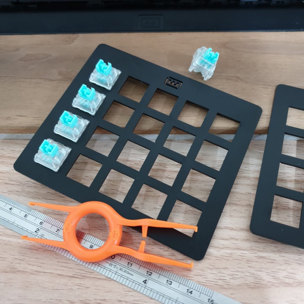 Kevin has previously made a few switch test plates that have different switch hole sizes on each row. This allowed Kevin and me to test the Lekker switch samples’ hot-swappability for different tolerances.