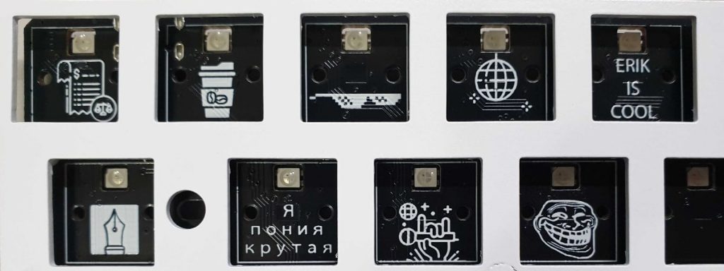 You can claim a spot on the PCB. Make a doodle, find a meme or add some nice words. Your design or idea will be on every 60HE. Not just this production, but for every production, on every 60HE keyboard. Here is a little preview of what it can look like. (there are rules applicable in relation to copyright, any type of name, or profanity)