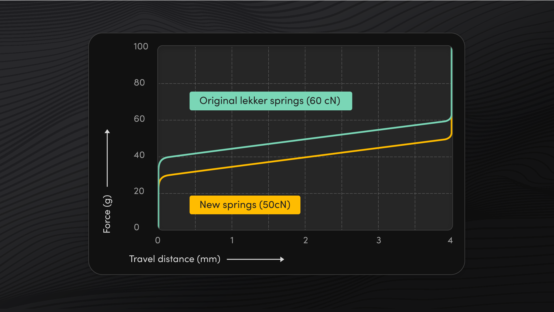 Naturally, the Wooting Discord community came with the request for spring alternatives of both lighter and heavier versions. We answered the lighter version request.