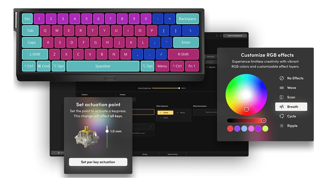 A low latency, analog keyboard in an 80% layout, packed with cutting edge features like True 8kHz polling, Rapid Trigger and our latest innovation: Rappy Snappy.